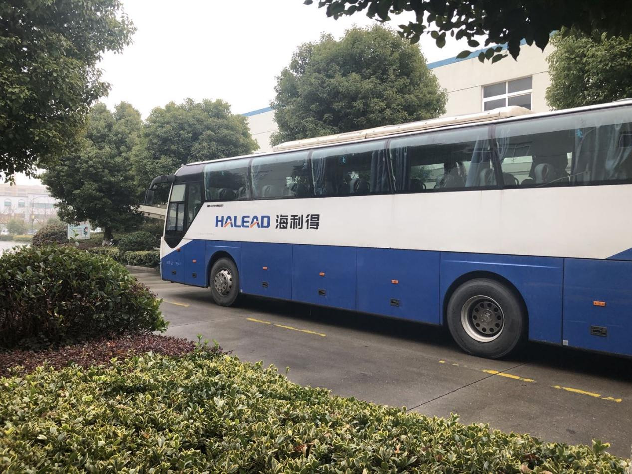 Thecompany is equipped with many buses to pick up employees to and fromwork at different times, fully advocating a green and low-carbon life