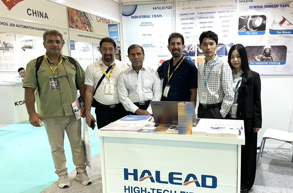 公司携抗芯吸、尼龙、缝纫线、PPS等系列差异化产品参展,吸引了来自土耳其、德国、意大利等国家的新老客商驻足观看。其中,低收缩产品因其广泛应用于胶管、篷布、膜材料等领域,迎合了土耳其市场需求,备受青睐。而抗芯吸产品能够解决由于“灯芯效应”造成的产业用布吸湿吸水问题,展现出强大的市场潜力,成为本次展会的主推产品之一。